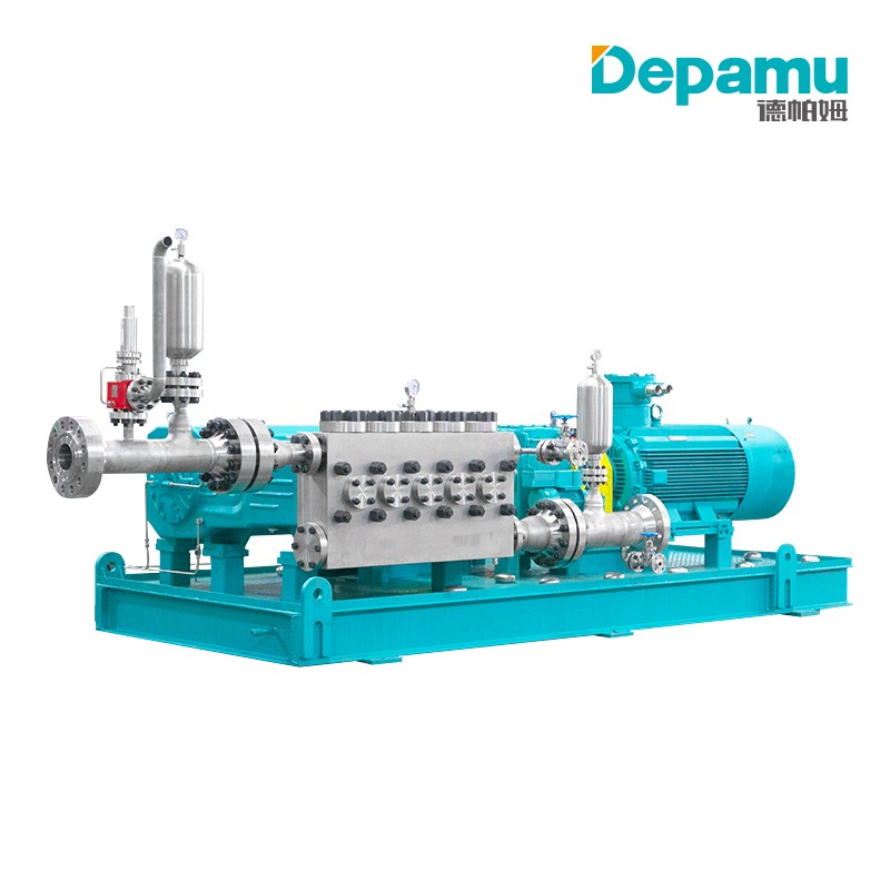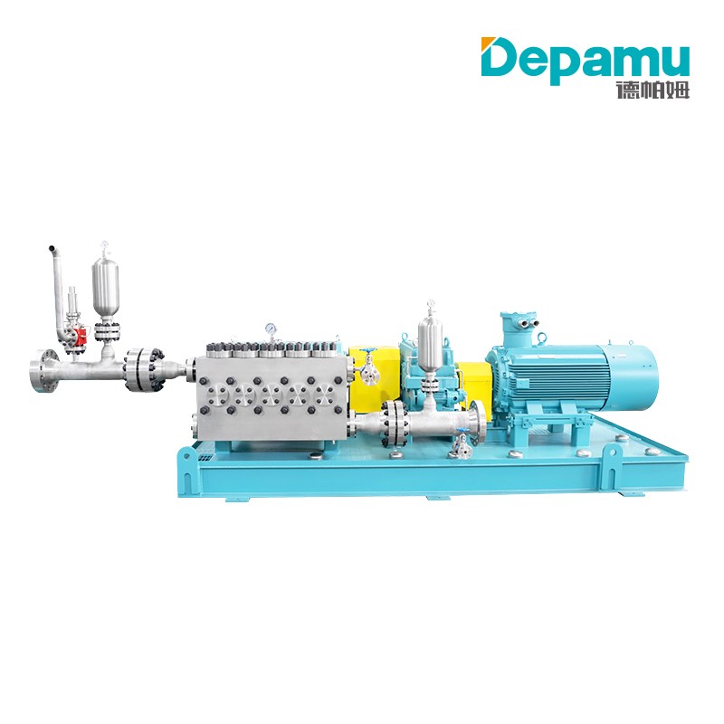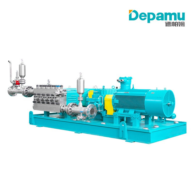 DEPAMU reciprocating pumps, designed as per American Petroleum Institute standard (API674), can represent quality at a worldwide leading level, and many patents the company has obtained can prove that. Products can meet extremely severe service conditions, transport materials accurately and reliably. Based on solid technologies, reciprocating pumps are especially popular in various fields. High-pres- sure plunger reciprocating pumps feature high efficiency, compact structure, stable performance, reliable and safe operation.